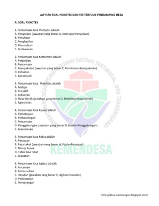 Latihan Soal Psikotes Dan Tes Tertulis Pendamping Desa 2016