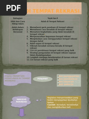 Social Studies Religious Studies Other. Ciri-ciri pembinaan tempat rekrasi yang baik 9. ADAB DI TEMPAT REKREASI DRAFT.